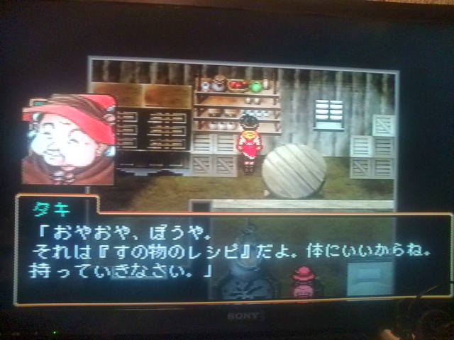 帰る際にタキの家の棚を調べると「レシピ」をGET出来ます。
